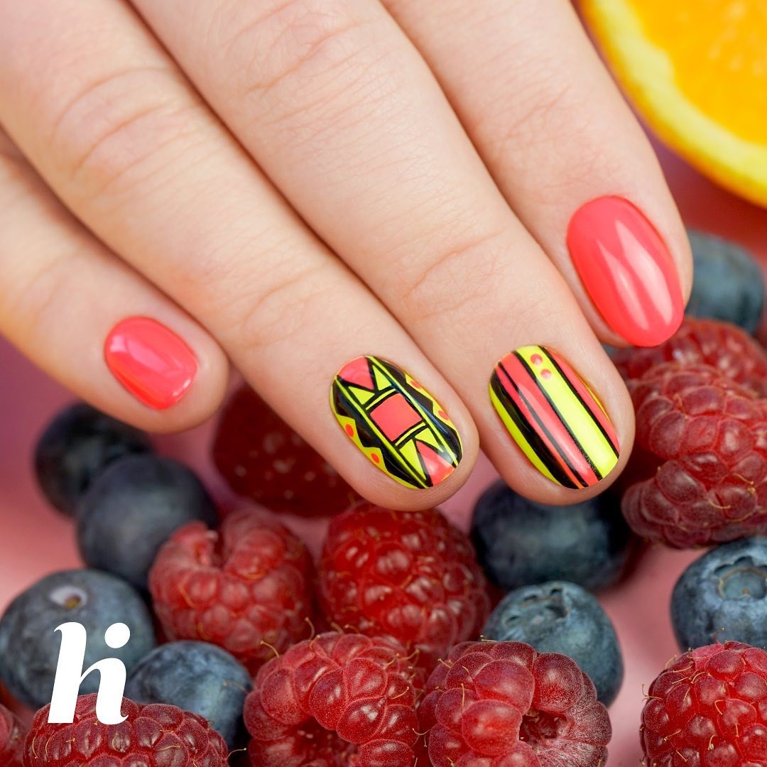 Wykonany z największą precyzją aztecki wzorek to coś, co pięknie przyozdobi Twoje pazurki na lato. Neonowe odcienie czerwieni jak Neon Red#233 i żółci w wydaniu Neon Yellow#121, przełamane czarnymi urozmaiceniami to świetnie dobrane trio.