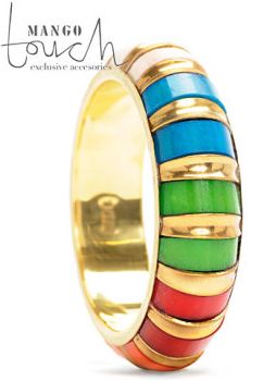 Kolekcje Miu Miu, Niny Ricci czy chociażby Lanvina prezentowały się w blasku neonów. Multikolorowe stroje to absolutny hit tego sezonu, jednak jak wiadomo, takie stroje nie pasują ,,zawsze i wszędzie”. Nawet jeśli masz w sobie na tyle odwagi, aby sięgnąć po żarówiaste kolory ubrań, nie sprawdzą się one w pracy czy na uczelni. Alternatywą mogą okazać się kolorowe ozdoby, które dodadzą nam blasku i nie są już tak kontrowersyjne jak propozycje z wybiegów. Złotą bransoletę w kolorach tęczy znajdziesz w najnowszej kolekcji Mango za jedyne 59 zł