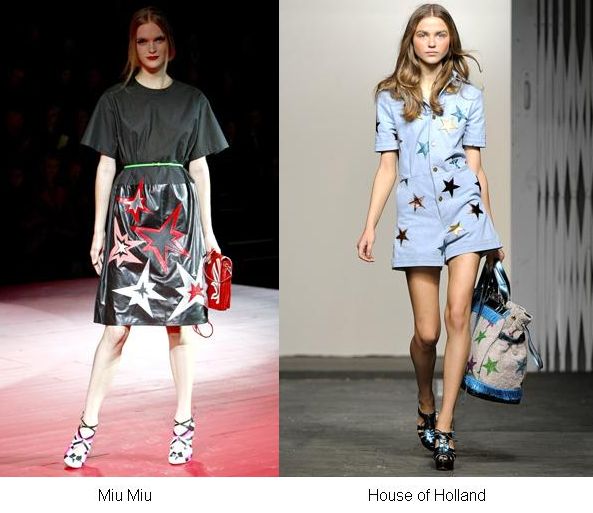 Rajstopy pochodzą z kolekcji TopShop, a inspiracją do ich stworzenia była bez wątpienia wiosenno- letnia kolekcja MiuMiu lub House of Holland. Na obydwu pokazach królowały iście estradowe stroje, z motywem gwiazdy w roli głównej. I choć trzeba przyznać, ze spódnica w gwiazdy to dość kontrowersyjny wybór, tak rajstopy z podobnym wzorem mogą być ciekawym urozmaiceniem stroju, niekoniecznie tego wieczorowego. A Wy, co o nich sądzicie?