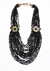 Przedstawiony naszyjnik pochodzi z karnawałowej kolekcji firmy Mango. Idealny do sukienek bez dekoltowych lub do tych z dekoltem o naprawdę wielkim wcięciu. Bogata i masywna biżuteria jest w uniwersalnym czarnym kolorze, który dopasujecie praktycznie do każdego innego. Nie przesadzajcie jednak z pozostałymi zdobnymi elementami. Taki wyraźny naszyjnik nie może mieć konkurencji!