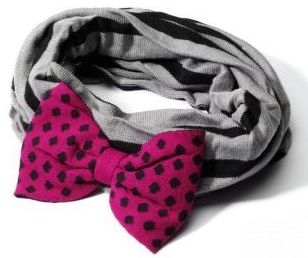 Jeśli szukasz oryginalnego szalika, w nieco zwariowanych stylu, koniecznie odwiedź sklepy Cropp. Tam znajdziesz niebanalny, popielaty komin z zawadiacką różową muchą w grochy. Dla miłośników stylu emo i nie tylko.