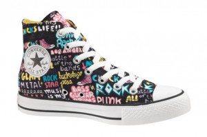 Rozpocznij jesień w rockowym stylu! A raczej w stylu.. conversowym! Fanom tej marki nie straszne są chłody, mrozy i deszcze – ukochane trampki mogą nosić przez cały rok. Firma właśnie zaprezentowała najnowszą kolekcję – jesień/zima 2010/2011, a my wybrałyśmy dla was te najbradziej kobiece trampki. Sięgające do kostki buty zapewnią wam ochronę przed wiatrem i brak tak nieprzyjemnego podwiewania przez nogawki. Czarne trampki pokryte są masą kolorowych napisów i nadają się idealnie dla drzemiącej w każdej z Was Rock Star! Cena ok.200ł.
