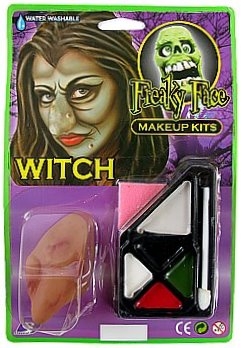 Wystarczy zaopatrzyć się w super zestaw do charakteryzacji np. wiedźma, ze sklepu internetowego www.party-world.pl, który kosztuje zaledwie 10 zł. W skład zestawu wchodzi oczywiście garbaty nos- nieodłączny atrybut złej czarownicy, a także farbki do malowania twarzy. Nakładamy je specjalną pacynką, a producent zadbał także o nasz ,,ludzki” wizerunek na drugi dzień- cały makijaż możemy zetrzeć specjalną ściereczką dołączoną do opakowania. Czy warto?