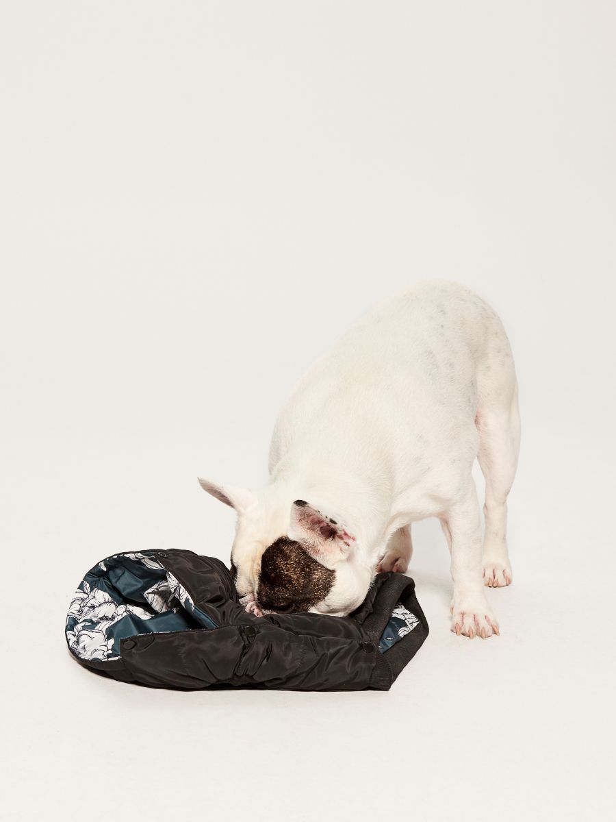 Kropką nad i jest zestaw kurtek dla psa oraz dla jego pani. Psiak może otrzymać od swojej pani dwustronną ocieplającą kurtkę z kapturem, uszytą z ciepłego materiału, która z jednej strony jest czarna a z drugiej pokryta kwiatowym wzorem. Oczywiście pani do kompletu może otrzymać dwustronny płaszcz z kolekcji Little friends, którego góra wykończona jest szerokim otulającym kołnierzem. Płaszcz posiada dodatkowe rozcięcia po bokach, które zwiększają komfort noszenia oraz uganianie się za pupilem.