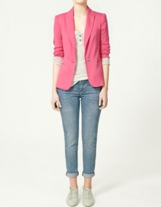 Marynarka i jeansy to ulubione połączenie wielu kobiet. Większość z nas nie potrafi jednak urozmaicić tego stroju tak, aby nie wyglądać nudno i przewidywalnie. Żeby nadać temu zestawieniu nieco świeżości wystarczy skusić się na odrobinę koloru.