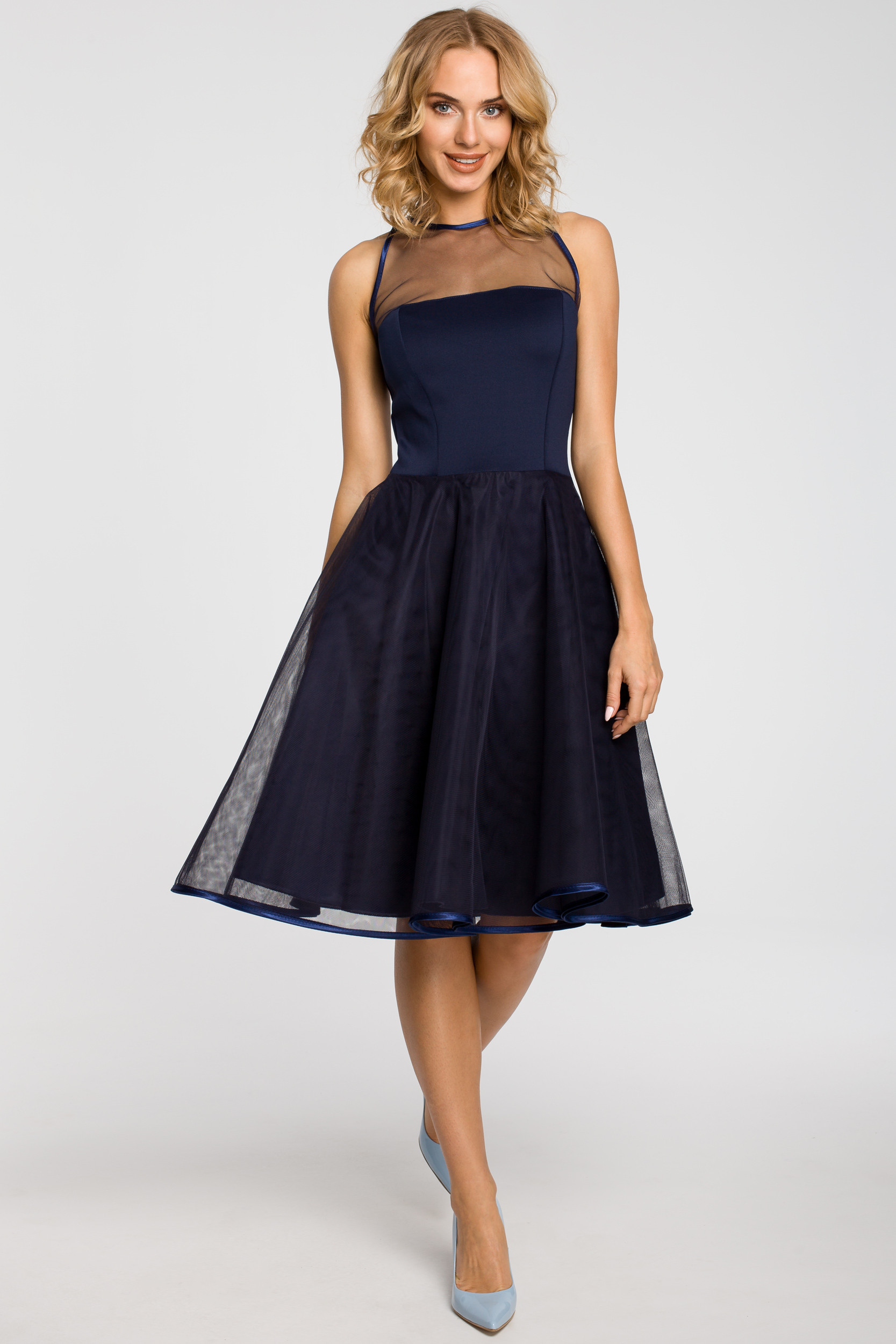 - Typ dekoltu – ten zabudowany, pod szyję lub w kształcie litery U może optycznie powiększyć biust. Z kolei dekolt V wysmukli szyję.