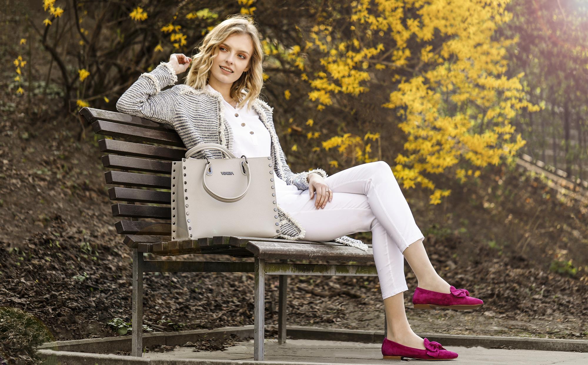W kolejnej stylizacji wykorzystaliśmy stylowe zamszowe mokasyny VENEZIA z kokardką w filetowym kolorze – doskonale prezentują się w szczególności w towarzystwie jasnych strojów. Zestawiając je z białymi cygaretkami i koszulą w tym samym kolorze można w ciągu kilku chwil otrzymać stylizację, która świetnie sprawdzi się na wiele okoliczności. Dopełnieniem całości jest szary sweter, który z powodzeniem można zastąpić kardiganem lub luźniejszą marynarką.