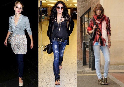 Dżinsy na codzień przeważnie wkładamy do płaskich butów – baletki, sandałki, czy adidasy w połączeniu z wygodnymi spodniami są bardzo komfortowe. Jednak każda z nas zdaje sobie sprawę, że nasze nogi najładniej prezentują się w dźinsach podkreślonych wysokimi obcasami. Hollywoodzkie gwiazdy wiedzą o tym doskonale. Zarówno Emma Watson, Vanessa Hudgens, jak i Misha Barton zdecydowały się na obcisły krój, typu rurki, który pokochały kobiety na całym świecie. Pierwsza z nich włożyła spodnie jako uzupełnienie sukienki, druga – potargane dżinsy w rockowym klimacie, zaś bohaterka „Życia na fali” wybrała jasny odcień spodni, który wygląda bardzo kobieco.
