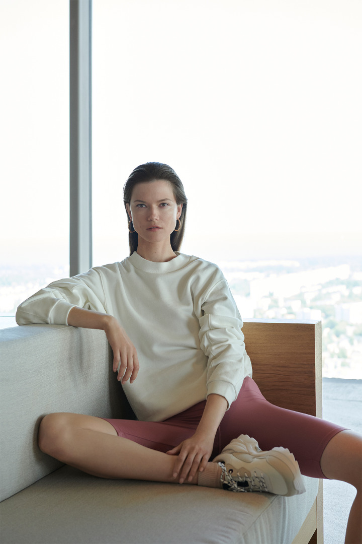 Oprócz wymienionych bluz i legginsów, w premierowej kolekcji od polskiej marki można znaleźć także wygodne spodnie dresowe, koszule z miękkiej, ciepłej dzianiny, staniki sportowe, podkreślające sylwetkę body oraz oversizową parkę z nieprzemakalnej tkaniny. Wszystkie elementy kolekcji można dowolnie zestawiać ze sobą, a także łączyć z innymi rzeczami, które na pierwszy rzut oka nawet nie kojarzą się ze sportem czy aktywnym trybem życia, a będą świetnie pasować, np. z elegancką marynarką lub płaszczem, spodniami cygaretkami oraz mocną biżuterią. Właśnie dlatego styl ten tak uwielbiają influencerki i modelki – w legginsach do jogi wygląda się dobrze nie tylko podczas ćwiczeń na macie i medytacji, ale również na kawie z przyjaciółką czy w trakcie randki. Trend Athleisure stał się też „uniformem” osób pracujących od wielu miesięcy w systemie home office. Dziś liczy się przede wszystkim wygoda i luz, a także miłe w dotyku dzianiny. Na nowo szukamy balansu i komfortu życia. Na własnych warunkach.