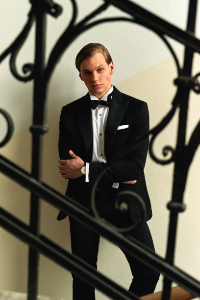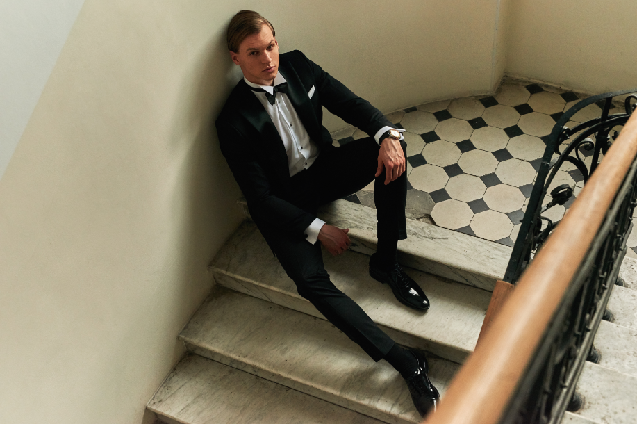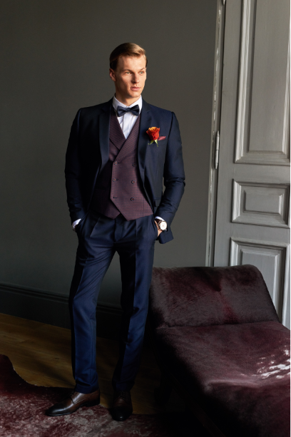 W kampanii stylizacje uzupełniono klasycznie eleganckimi białymi koszulami oraz dodatkami, które idealnie dopełnią wizerunek Panny Młodej. Mucha i poszetka w odcieniu pudrowego różu czy granatu, krawat w kwieciste motywy w odcieniach złota, żółcieni czy różu, ale także, dla odważniejszych, skarpetki, również w kwiaty lub, dodające nonszalancji, drobne wzory. Wykończenie stylizacji stanowią spinki do mankietów oraz skórzane buty i paski. Mocną pozycją kolekcji ślubnej jest stylizacja, której bazą jest smoking, a zestawiono go z koszulą zapinaną w całości na spinki, wiązaną muchą oraz lakierowanymi butami. W takim wydaniu każdy Pan Młody poczuje się pewny siebie i atrakcyjny, co w tak stresującym dniu wydaje się niezbędne.