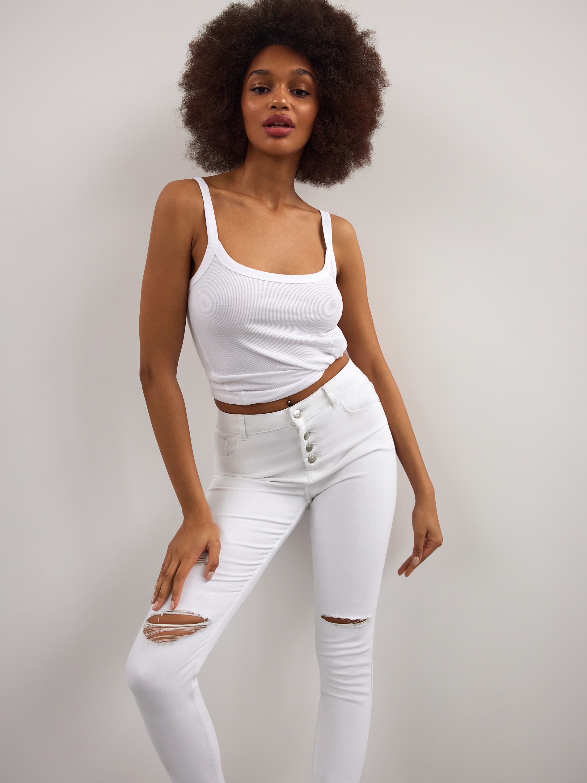 W MOHITO w tym sezonie przedstawiamy kolejną odsłonę denimu! W najnowszej kolekcji znajdziemy wiele modeli najpopularniejszych spodni – skinny, mom jeans, wide leg, flare a także niezastąpione szorty. Idealnie dopasowane jeansy pięknie podkreślą wszystkie atuty sylwetki oraz stworzą przede wszystkim komfortowy look na co dzień. Nowością są spódnico-spodnie, które tego lata będą hitem, a w połączeniu z oversizową kataną będą prezentować się bardzo stylowo.