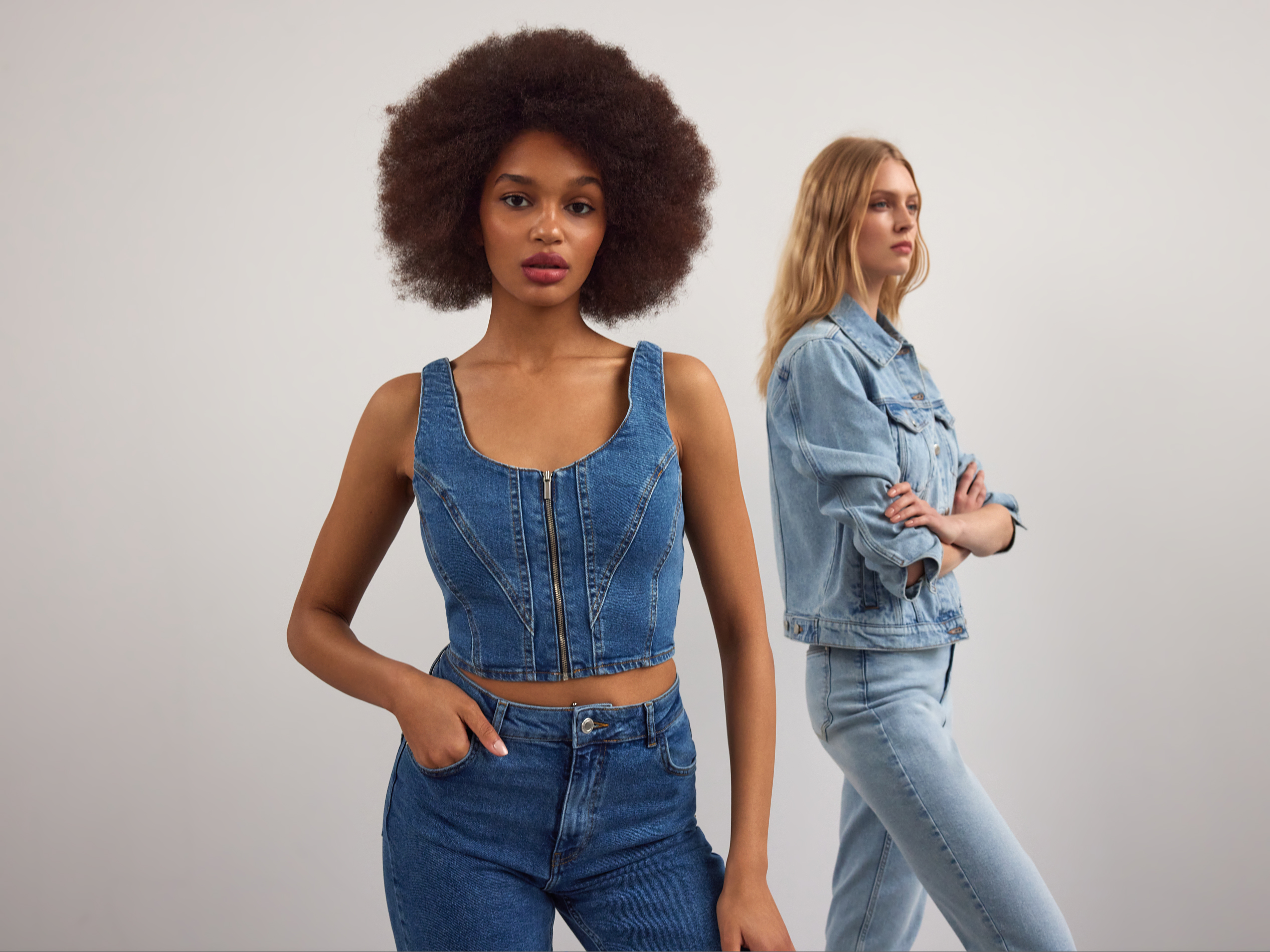 Denim Edition proponuje nam także wiele odcieni niebieskiego, od granatu po błękit z przeróżnymi wycięciami i przetarciami. W kolekcji nie mogło zabraknąć również stylizacji w wersji total look – top i spodnie lub kurtka i spódnica to must have w wiosennej garderobie!