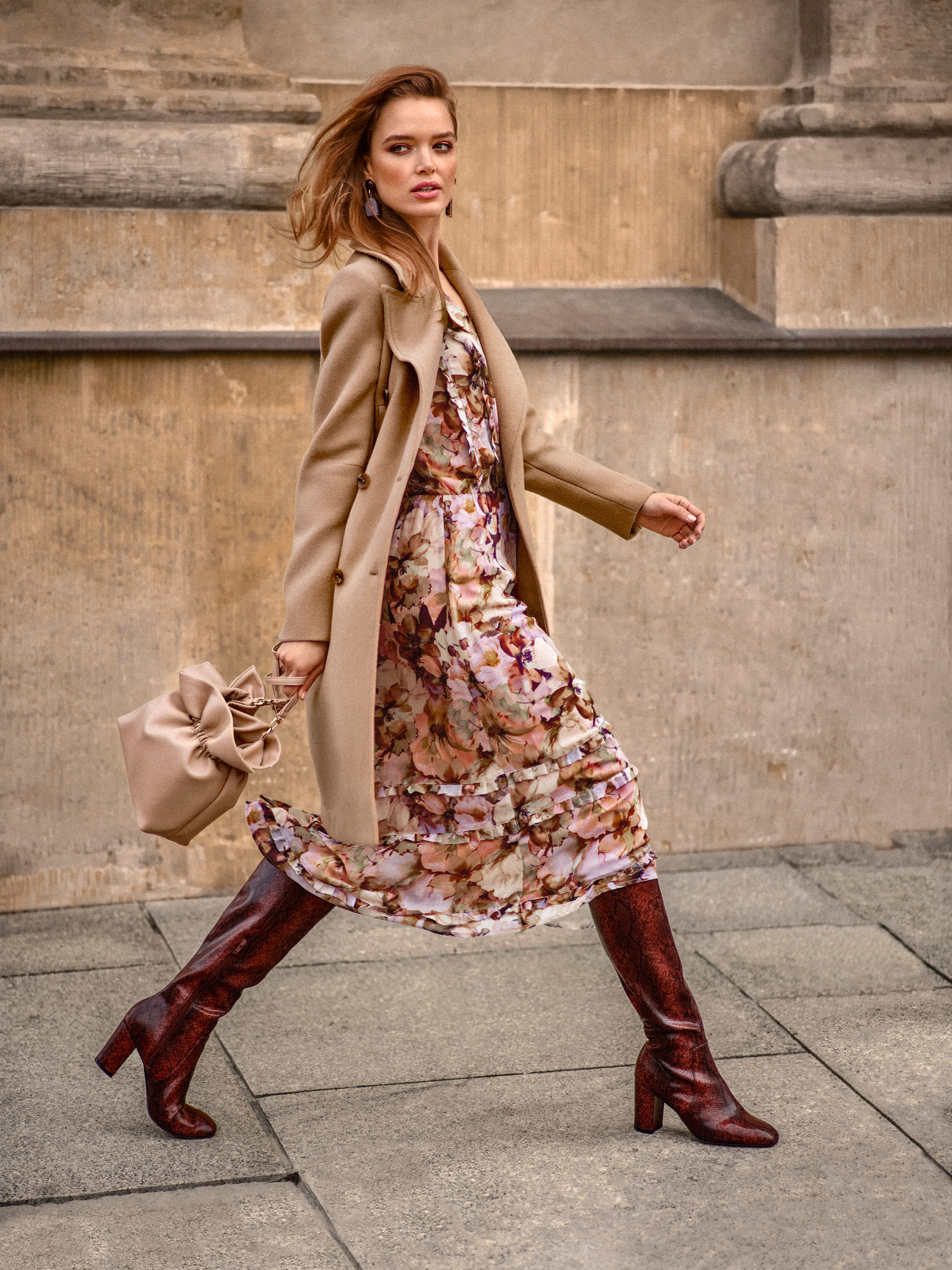 Kolorystyka kolekcji jest oparta na ciepłych i naturalnych barwach. Znajdziemy w niej dużo beży i odcieni brązu nawiązujących do stylu retro oraz minimalistyczne i eleganckie szarości, błękit denimu i czerń. W tym sezonie nie zabraknie też uwielbianego przez kobiety romantycznego różu i to w kilku odcieniach.