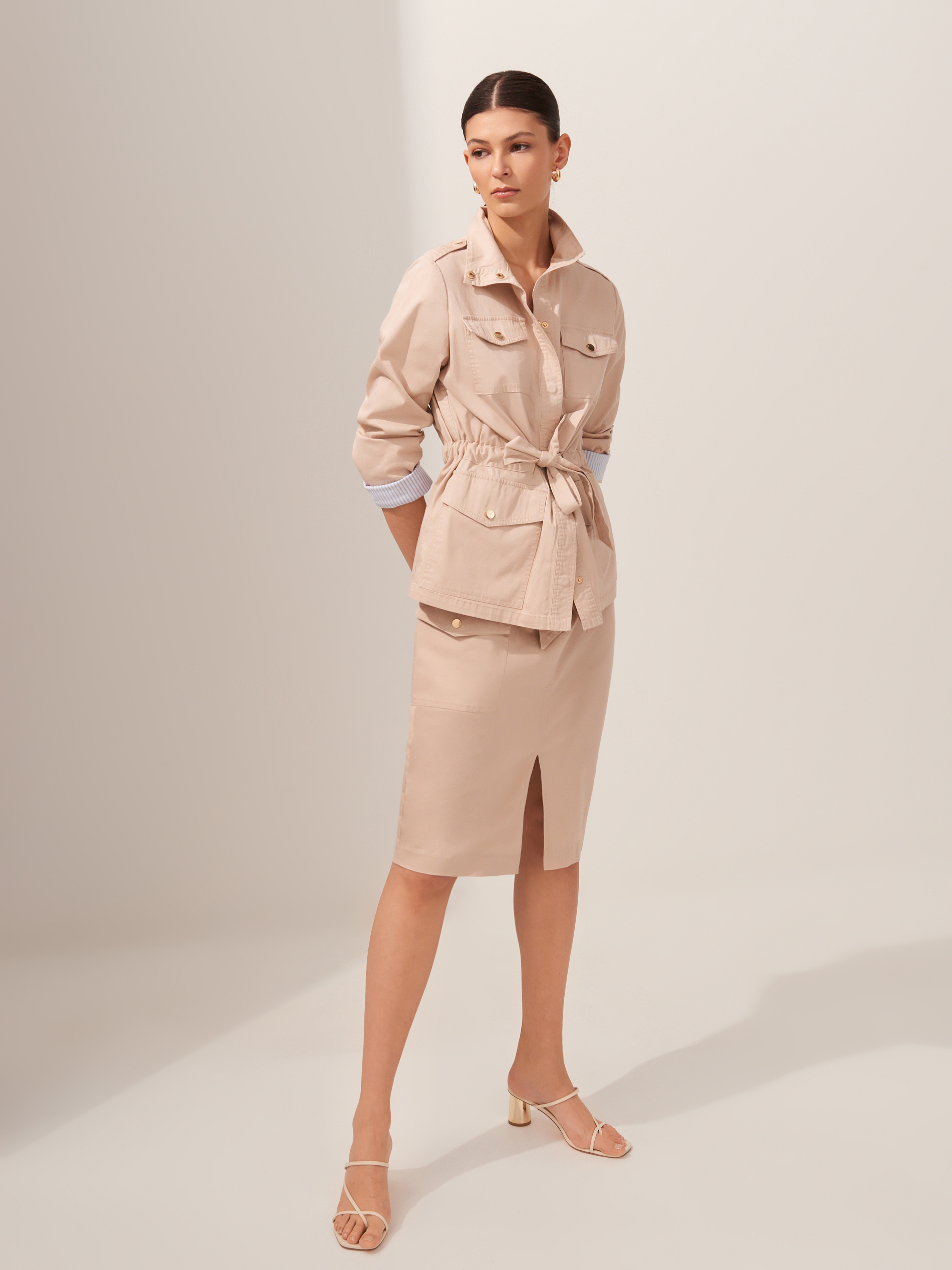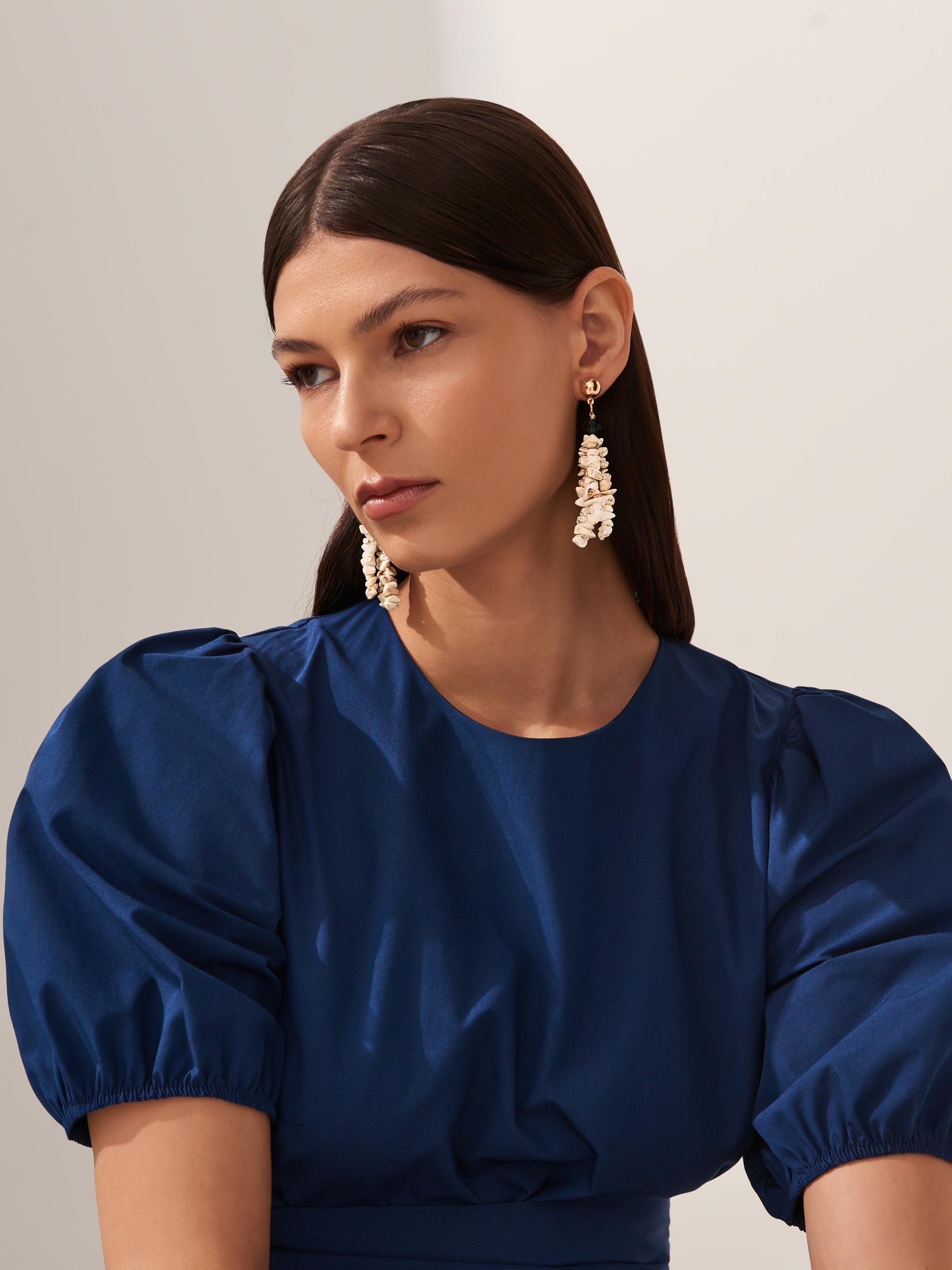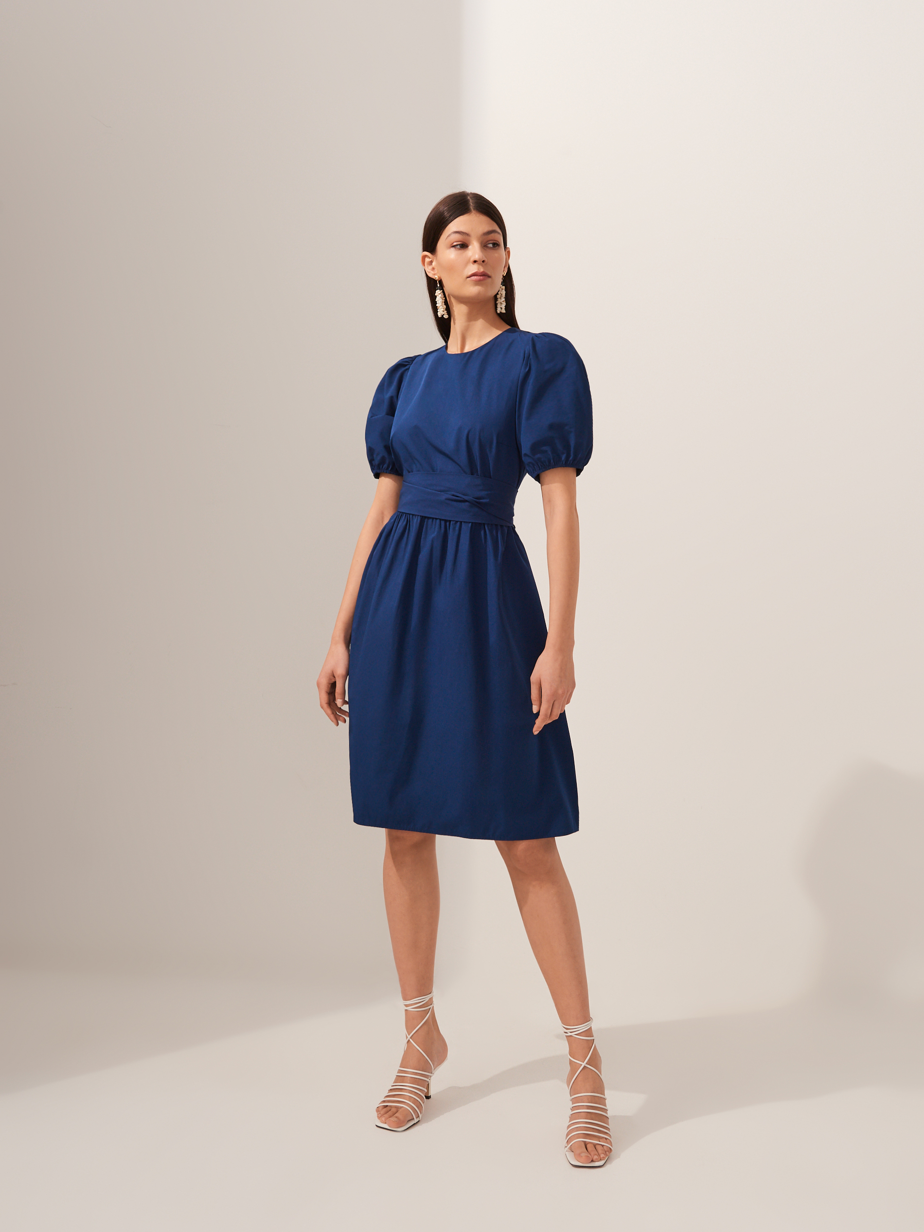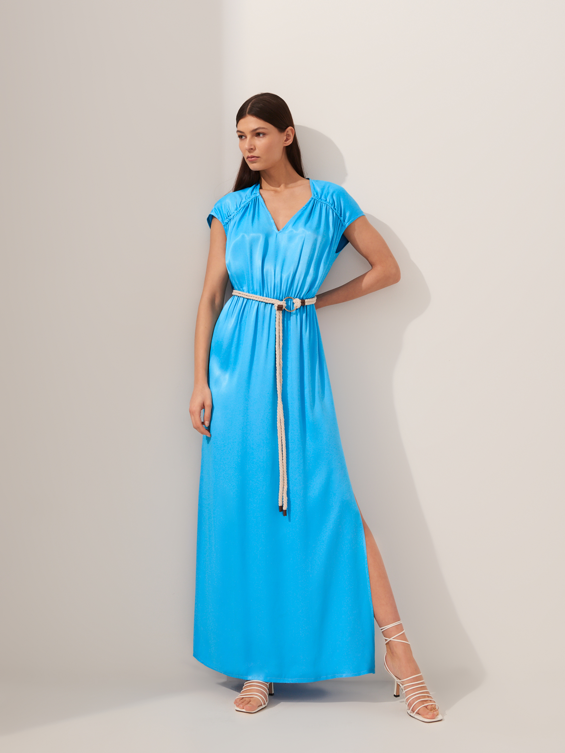 Lookbook dopełniają ciekawe dodatki, jak torby-koszyki w odcieniach bieli i beżu, modne, białe sandałki z cienkimi paseczkami, w sam raz na upalne dni, paski i marszczenia w talii oraz duże kolczyki.