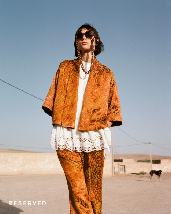 Plenery marokańskich bezdroży są nie tylko świetnym tłem dla kampanii, ale także inspiracją letniej kolekcji marki. Punktem wyjścia stał się klimat beztroskiej sielanki, jednak nie w typowym wydaniu bo unowocześnionym stylem techno festiwali z lat 90. Jak przystało na Reserved całość przesycona jest wielokulturowymi motywami, dlatego w kolekcji doszukać się można wzorców zaciągniętych z orientu, odniesień do etno i stylu rodem z Bałkanów. Czerpanie z tradycji różnych cywilizacji to obecnie silna światowa tendencja w modzie i w popkulturze, której hołduje także Reserved. A wszystko jak najbliżej natury.