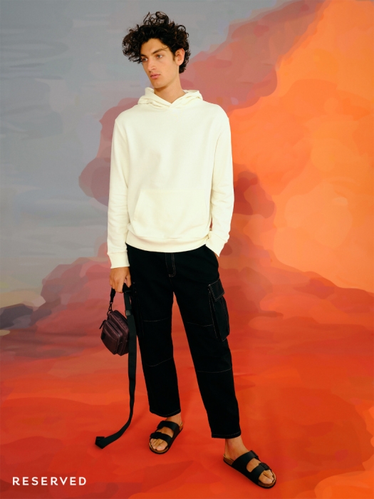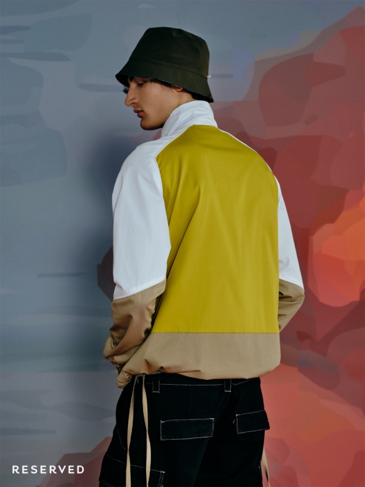 Podobna estetyka zdominowała linię męską kolekcji Reserved RE.DESIGN wiosna–lato 2020. Ta, oprócz sztuki współczesnej, czerpała także z luźnego stylu kalifornijskich surferów. Stąd lekko sportowe, streetstylowe kroje, które doskonale łączą się z wdzięcznym w ubiorze casualem. Twarzowe spektrum odcieni obejmuje takie barwy jak fiolet, róż, turkus, zieleń, granat czy limonka. Wśród nadruków na szczególną uwagę zasługują różnokolorowe gradientowe paski.