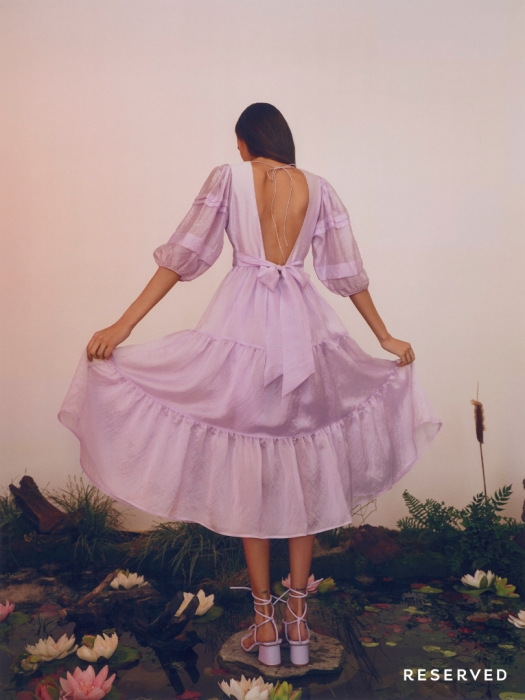 Magiczny, baśniowy charakter kolekcji doskonale oddaje fantazyjna kampania reklamowa. Skąpane w barwnym, przygaszonym świetle fotografie przenoszą do mistycznego świata pełnego piękna i niczym nieograniczonej wyobraźni. Tła jak spod pędzla impresjonistycznego malarza, otrzymany za pomocą oświetlenia efekt świtu i scenografia skomponowana z roślin (w tym z białych i różowych lilii niczym z obrazów Claude’a Moneta) tworzą doskonałe tło dla najnowszej propozycji Reserved.