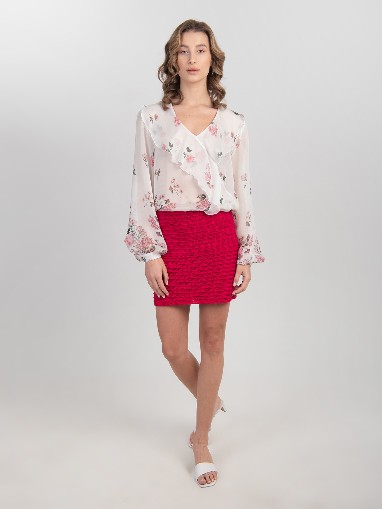Choć w kolekcji Blooming dominuje biel i delikatne pastele, projektantka zachęca, aby łączyć je z odważniejszą czerwienią i kolorami, które nawiązują do nazwy kolekcji – Blooming – ang. kwitnący. Znajdziecie tu lekką jedwabno-bawełnianą koszulę w drobne kwiaty i dużo bardziej soczyste topy. Te wykonane na szydełku to propozycja dla bardziej odważnych kobiet lub tych, które w wakacje zrzucają formalne ubrania, zmieniając się w wolne, pełne beztroski hipiski. W kolekcji sporo jest właśnie tego typu kontrastów, które dotyczą nie tylko kolorystyki, ale także łączenia materiałów — efekt WOW tworzy zestawienie cięższej wełny ze zwiewnym jedwabiem. Żartując, można rzec, że kobieta w kolekcji Blooming jest zmienna jak polskie lato, które często wymaga od nas założenia także cieplejszych dzianinowych swetrów. Te także stanowią silny akcent kolekcji Aleksandry Suskiej, która odczarowuje moherowe swetry, które już nigdy nie powinny kojarzyć Wam się z babciną szafą.