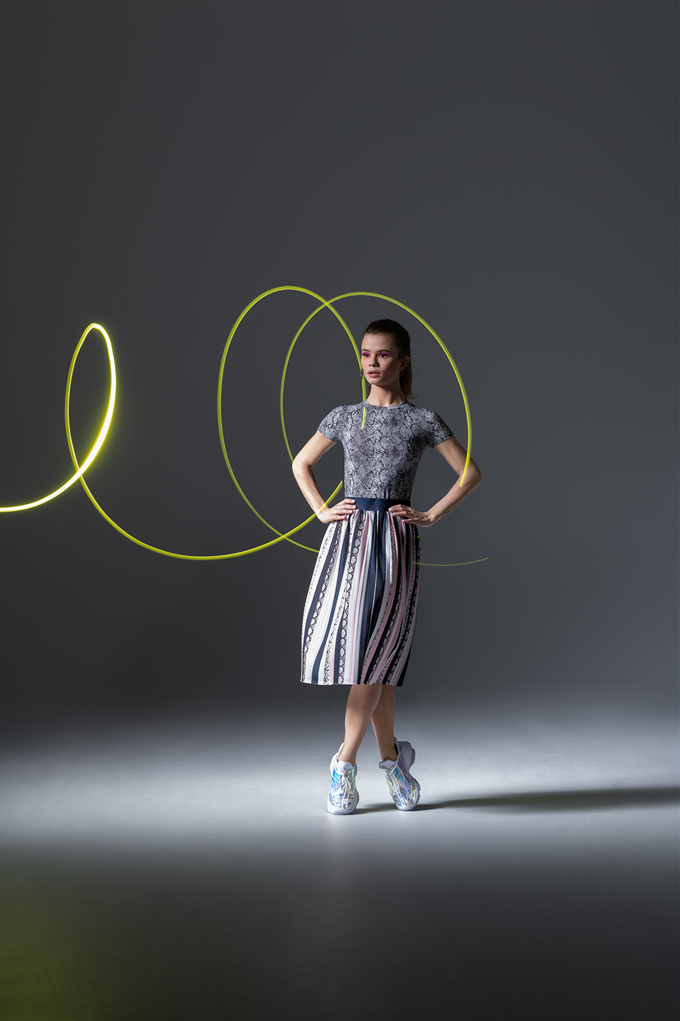 Kolekcję Hyper Snake promuje lookbbok jedna z ulubionych Instagirls marki Sinsay, Pola Bogdańska, znana jako @simplybypola. Jako projektantka i pełnoetatowa fashionistka, młoda modelka miała kreatywny wkład w stylizacje, dodając zdjęciom wiarygodności. W rezultacie możemy podziwiać zestawy, które idealnie wpisują się w instagramowe trendy: „biker shorts” w duecie z białą marynarką, wężowe nadruki jako dopełnienie spranego denimu oraz neonowy golf w zestawieniu z szortami z wysokim stanem. Na zdjęciach uwagę zwracają też dynamiczne pozy, sportowy kucyk i odblaskowy róż na powiekach, które idealnie wpisują się w futurystyczną estetykę Hyper Snake.