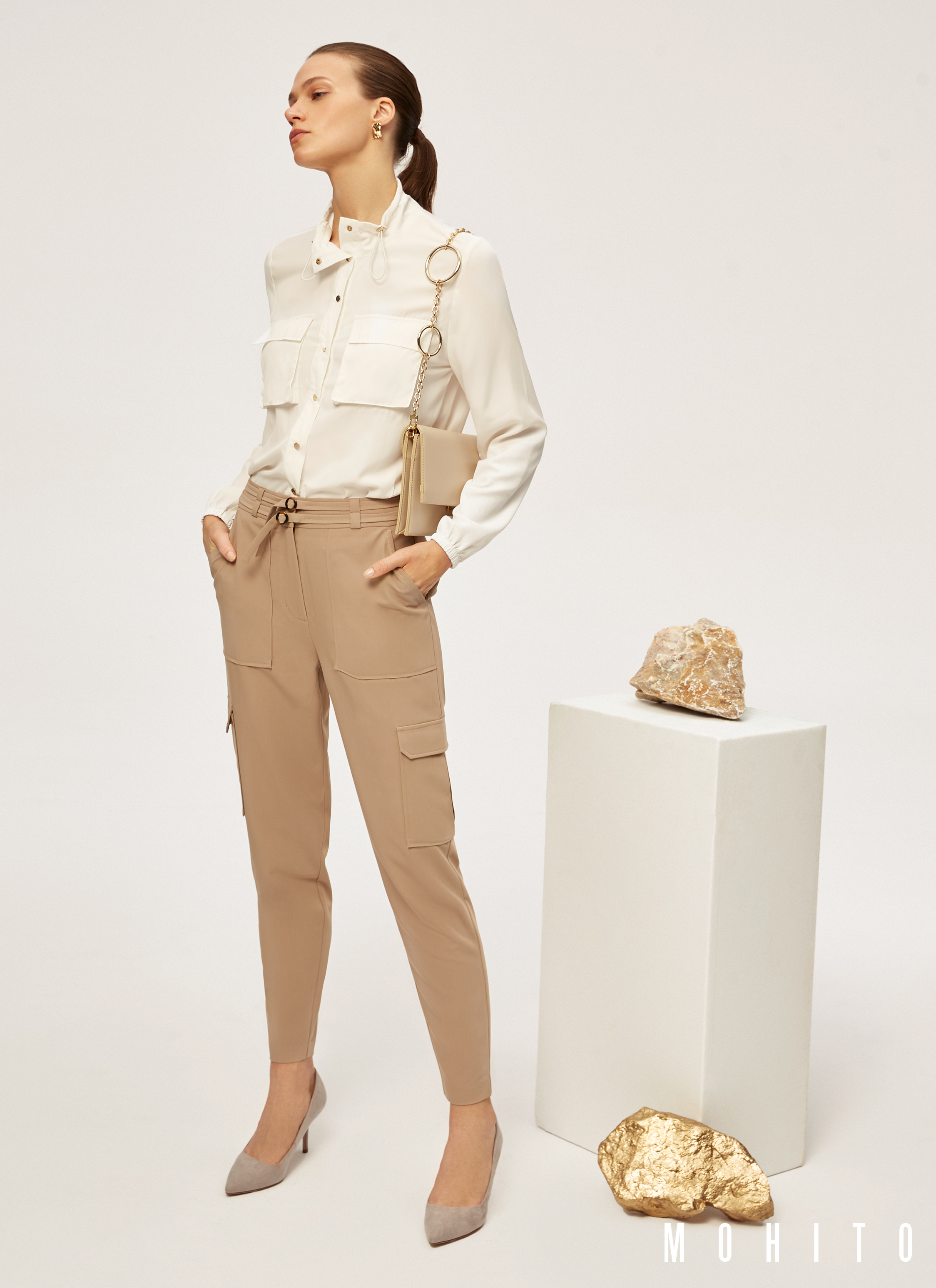 Projektanci marki przygotowali propozycje idealnie dla wielbicielek delikatnego i kobiecego stylu. W lookbooku znajdziemy piękny, dzianinowy beżowy set składający się z golfu ze spódnicą midi. Na uwagę zasługują motywy cargo czyli duże kieszenie na spodniach i koszuli. Interesujące są też luźne koszule i bluzki z efektem malowania pędzlem, doskonałe do codziennych, jak i bardziej oficjalnych stylizacji.