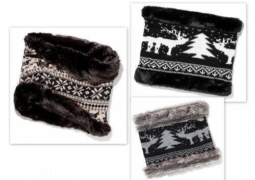 Tańszą propozycją są kominy Reserved, w zimowym, nieco norweskim stylu. Wnętrze komina oraz jego brzegi stanowi cieplutkie futerko, które ogrzewać będzie naszą szyję. Dodatkowym walorem kominów są oldschoolowe grafiki, niczym zaczerpnięte z sweterków z lat 80-tych. Kominy Reserved kosztują 59zł.