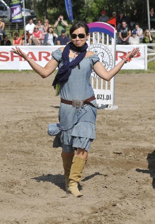 Kinga Rusin w lipcu 2009 zaprezentowała się w kowbojskim stroju na Ogólnopolskich Zawodach w Skokach przez Przeszkody Gałkowo Cup.