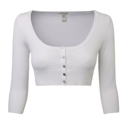 Białe, gładkie bolerko to jest właśnie to, czego potrzebujesz by uwydatnić biust! Subtelny dekolt i urocze guziczki, sprawią, że nawet z małym biustem będziesz wyglądać absolutnie seksi! Pod bolerko zakładaj ciemniejsze topy bądż T-shirty, co wzmocni efekt wdzięcznej klepsydry.