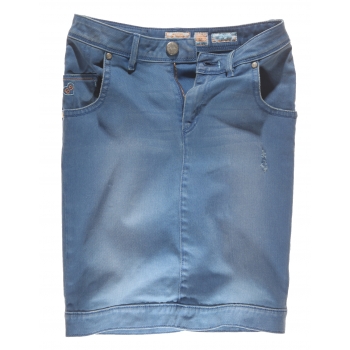 To tegoroczna propozycja marki Big Star. Jedne z wiodących producentów wyrobów z jeansu w tym roku postawił na połączenie dziewczęcej lekkości z charyzmatycznym stylem dżinsowych ubrań. Jeśli krępują Cie krótkie spódniczki, nie wyglądasz w nich za dobrze lub zwyczajnie ta długość nie pasuje na pewne okazje, bez wahania sięgnij po dżinsową spódnicę do kolan. Aby Twój ubiór nie wyglądał na nudny, zdecyduj się na bardzo kobiecy fason bluzki i ciekawe dodatki np. w postaci kokardy rodem z lat 20.