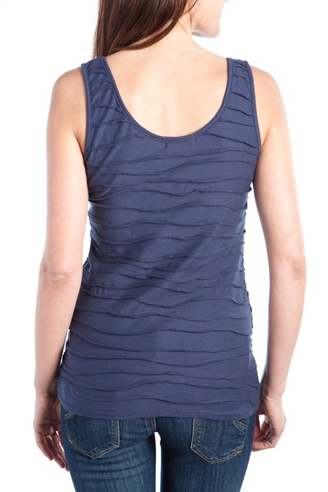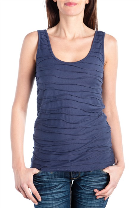 Jeśli mankamentem Twojej figury są zbędne kilogramy, a przede wszystkim za duży brzuch, zrezygnuj ze zbyt obcisłych fasonów i elastycznych materiałów. Nie dość, że będziesz bardziej się w nich pocić, to jeszcze wszystko co chcesz ukryć, będzie widać jak na dłoni. Zamiast tego lepiej wybieraj luźne, proste kroje koszulek- jednak bez przesady, nie możesz chodzić w worku! Jeśli masz spory biust możesz zdecydować się na kuszący dekolt. Co powiesz na granatowy top z najnowszej kolekcji Cache- Cache? Jego prosty fason i delikatne marszczenia sprawią, ze fałdki staną się po prostu niewidoczne!
