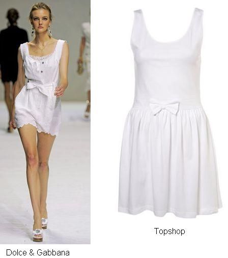 Specjalnie dla Was przemierzyliśmy wzdłuż i wszerz popularne, miejsce sieciówki by znaleźć tańszy odpowiednik sukienki z wybiegu. Duży wybór białych kreacji można znaleźć w salonach Topshop. Tam też wpadła nam w ręce urocza sukienka, do złudzenia przypominająca tę, którą prezentuje na wybiegu Caroline Trentini. Nieco mniej bieliźniana, za to pasująca na wiele okazji. Możesz nosić ja na dwa sposoby: z romantycznymi dodatkami w stylu vintage lub całkiem na sportowo.
