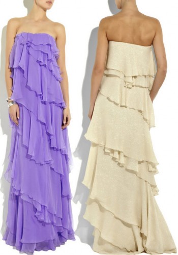 Dzisiaj proponujemy piękną sukienkę na wyjście, typu „maxi dress”. Pudrowe kolory są bardzo modne w tym sezonie, podobnie jak warstwy. Sukieneczki pochodzą z kolekcji Halstona – Chiffon-Lurex Ruffle. Siłą szyfonowych sukienek jest nie tylko ich piękny wygląd lecz również okazjonalne zastosowanie – można się w nich poczuć naprawdę wyjątkowo.