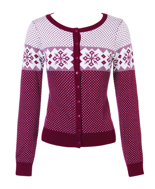 Z czym nosić taki sweterek? I tym razem warto poszukać inspiracji w pokazie D&G. Projektanci zdecydowali się na typowo zimowy zestaw: norweskie wzory w połączeniu z futrem! Bordowy kolor świetnie prezentuje się w towarzystwie brązu, czerni i szarości. Pod sweterek załóż więc bluzeczkę w którymś z tych kolorów, a na nogi obowiązkowo futrzane śniegowce!