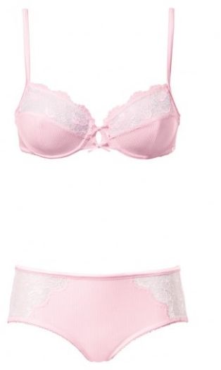 Komplet doskonale uwypukla walory kobiecej sylwetki, a jasnoróżowy kolor świetnie podkreśla opaleniznę. Stanik zdobiony jest delikatną koronką i urokliwymi kokardkami.