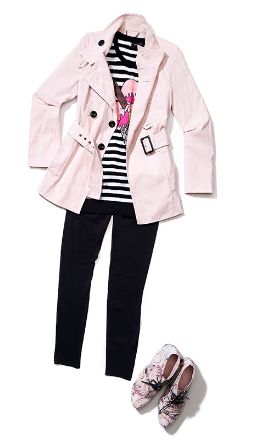 Odbiegając od tandety, należy pamiętać, że róż zestawiamy z ciemniejszymi ubraniami. Możemy urozmaicić nim służbowy kostium, jak również postawić na humor. I taki właśnie, pozytywnie nastrajający zestaw proponuje nam marka Reserved. W najnowszej kolekcji znajdziemy słodki, różowy płaszczyk, do którego styliści doradzają nam założyć sweterek z zabawnym nadrukiem. Czyż nie wygląda apetycznie? Nutki romantyzmu dodadzą różane półbuty.