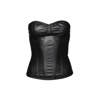 Jeśli chcesz zaszaleć w klubie, świetnie sprawdzi się czarny gorset ze sztucznej skóry. Załóż go do obcisłych spodni, niekoniecznie z tego samego materiału (moga to być np czarne dżinsy). W doborze biżuterii postaw na maksymalizm- wybierz bransoletkę nabijana ćwiekami i duży, naszyjnik z metalowymi elementami.