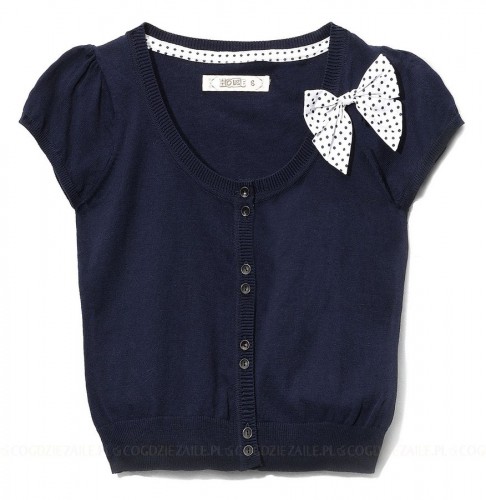 Doskonale na tę okazję nadaje się sweter z najnowszej, wiosennej kolekcji firmy House. Króciutki, dzianinowy sweterek, w uniwersalnym granatowym odcieniu, z pewnością nie poirytuje Twojej teściowej. Ozdobiony minimalnymi bufkami na ramionach, malutkimi guziczkami i białą kokardką w kropeczki podkreśli w tobie to, co najlepsze.