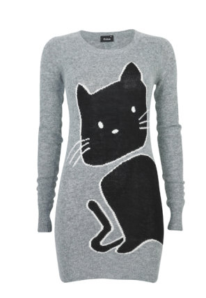 Jeśli w szkole nauczyciele wymagają, abyście nosiły ubiór w stonowanych kolorach, wybierz popielaty sweter z czarnym kotem. Nietuzinkowy design sprawi, że nawet w tak ponurej kolorystyce będziesz wyglądała odlotowo! Na co dzień zakładaj do sweterka ciemne dżinsy rurki i botki lub kozaki. Skorzystaj z tego, że sweter ma przedłużany fason i wybierając się na popołudniowe spotkanie ze znajomymi, sięgnij po skóropodobne legginsy. Zainwestuj też w dodatki w stylu glam rock – dzięki temu nie będziesz wyglądała zbyt dziecinnie. Sweterka szukaj sklepach Cubus.