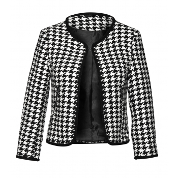 Krótki, kobiecy żakiet prekursorka mody damskiej nosiła niemalże codziennie- stąd wynika jego niezwykła popularność. Jednak słynna projektantka dobrze wiedziała, co robi. Żakiet z biało- czarnym wzorem tzw. ,,kurzej łapki”to ucieleśnienie dobrego smaku i elegancji. Pasuje na niemalże każdą okazję- nadaje się zarówno na popołudniowe wyjście, jak i typowo służbowe spotkanie. To, jakiego charakteru nabierze Twój żakiet, zależy wyłącznie od Ciebie! Możesz założyć go do klasycznej, czarnej spódnicy lub z powodzeniem nosić do zwykłych dżinsów. Jedno jest pewne- to zdecydowany ,,must have” tego (i nie tylko) sezonu!