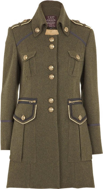 Militarny trend obecny jest na wybiegach wielu projektantów, którzy w tym roku namawiają nas, by pokazać pazura. Wojskowe motywy wiążą się z wizerunkiem zadziornej chłopczycy, który w tym sezonie jest wyjątkowo na topie. Jeśli jeszcze nie kupiłaś jesiennego okrycia, dobrym wyborem będzie zielonkawy płaszcz o surowym kroju, z najnowszej kolekcji River Island. To coś zdecydowanie dla odważnych kobiet! Złote guziki dodają elegancji, a klasyczny fason jeszcze bardziej podkreśla męski charakter stroju. Aby nie wyglądać jednak zbyt chłopięco, nie zapomnij o kobiecych botkach na bardzo wysokim obcasie!