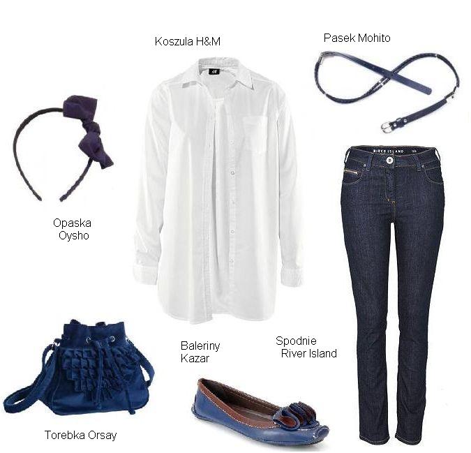 Jeśli chodzi o buty- zostawiamy Ci wolną rękę. Mogą to być np. eleganckie, niebieskie pantofle lub biało-czarne baleriny.