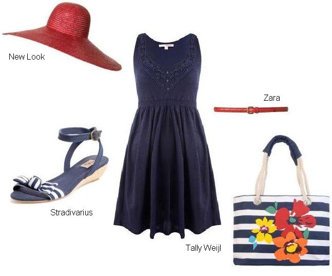 Nie zapomnij również o tym, że ciemne kolory wyszczuplają, natomiast latem warto rozjaśnić je kontrastowymi dodatkami. Tutaj świetnie sprawdzi się kolorowa torba Tally Weijl i czerwony kapelusz New Look.