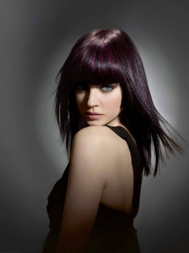 Fryzury Goldwell tym razem są mało ekstrawaganckie, a bardziej casualowe. Powyżej widziemy proste, lśniące włosy, którym charakteru dodaje gruba i ciężka grzywka. Co je wyróżnia? Zdecydowanie ciekawy kolor, który przypomina śliwkę w pełnym słońcu. Idealna propozycja dla pań o ciemnych włosach, szczególnie czarnych. Nadaj swoim włosom blasku i koloru i pokoloruj jesienne dni.