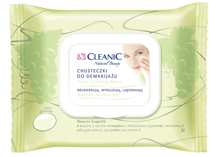 Chusteczki do demakijażu Cleanic z formułą GrapeVit