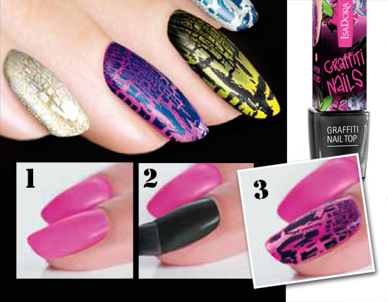 Producent poleca, aby na koniec nałożyć preparat IsaDora Top Coat, który wzmocni manikiur i dodatkowo nabłyszczy paznokcie. A jak Wam się podoba?? Poniżej przedstawiamy różne propozycje kolorystyczne paznokci w stylu graffiti.
