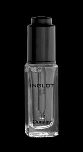 Duraline to płyn marki Inglot, który stosuje się w celu przedłużenia makijażu oczu. Wymieszany z cieniem do powiek, podkreśla głębie koloru i przedłuża trwałość cieni. Wystarczy jedna kropelka Duraline wymieszana z cieniem, a na powiece pojawi się piękny, intensywny kolor, który nie obsypie się tuż po wyjściu z domu. Złączone z nim cienie nie rolują się i nie sklejają w załamaniach powieki.