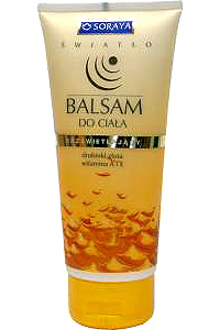 Balsam ma właściwości nawilżające, a w swoim składzie zawiera witaminę E, która przeciwdziała starzeniu się skóry. Nadaje się zarówno dla skóry młodej, jak i dojrzałej. Ma delikatny, bardzo przyjemny zapach i szybko się wchłania. Pozostawia skórę miękką w dotyku i pokrytą złotymi drobinkami, które pięknie mienią się blasku słonecznych promieni. Skóra wygląda naturalnie i zdrowo. Cena: ok. 13 zł