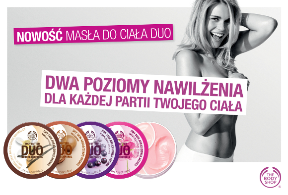 Jednak różne części naszego ciała często wymagają innej pielęgnacji. Jeśli i Ty uważasz, że niektóre miejsca na Twojej skórze SA bardziej przesuszone niż inne, koniecznie zapoznaj się z nowym produktem marki The Body Shop. Masło do ciała o wdzięcznej nazwie Duo, w jednym pojemniku zawiera dwa kremy: do skóry normalnej i wyjątkowo suchej. Dlatego też, wyjeżdżając w podróż nie musisz już zabierać niezliczonej ilości balsamów i kremów- wystarczy jeden! Mało tego, masła do ciała występują w kilku odmianach i pachną naprawdę kusząco. Do wyboru mamy: kwiat Acai, zmysłową Wanilię, odprężający Macadamia i Pachnący Groszek.