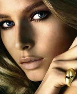 Jeżeli jest to ciepły odcień to możemy stosować wszelkie beże, brązy czekoladowe, ecru, a także złoty. Podobnie z różem na policzkach – lepiej przyciemnić je brązowym odcieniem – będzie wygl
