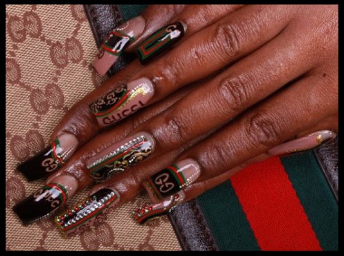 Powyższy wzór paznokci jest przeznaczony dla fanek modnych marek. Jeśli Gucci to Twój ulubiony projektant i to właśnie jego metka widnieje na każdym Twoim ubraniu, koniecznie musisz sobie sprawić pazurki sygnowane nazwą marki. Po prostu – musisz je mieć!